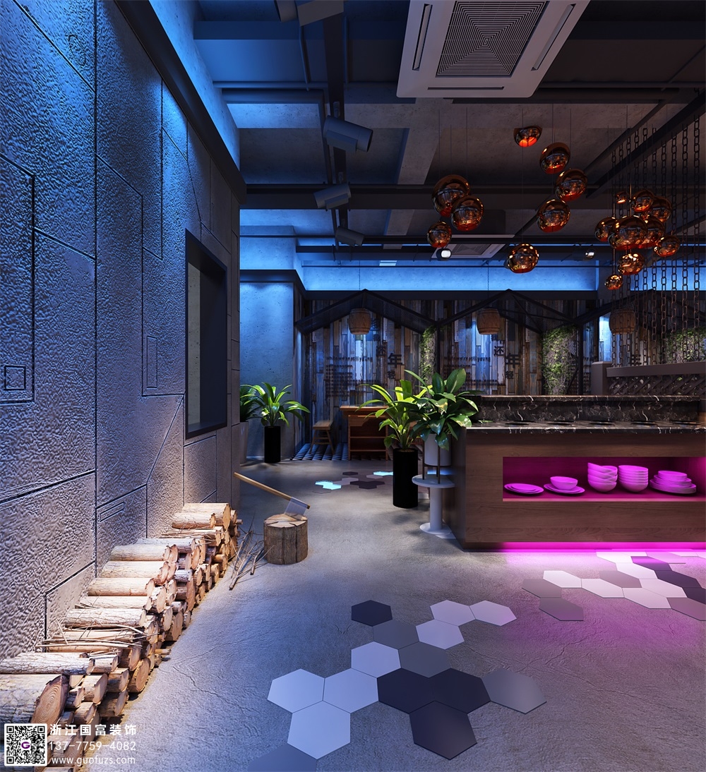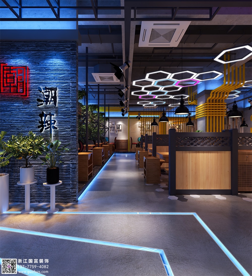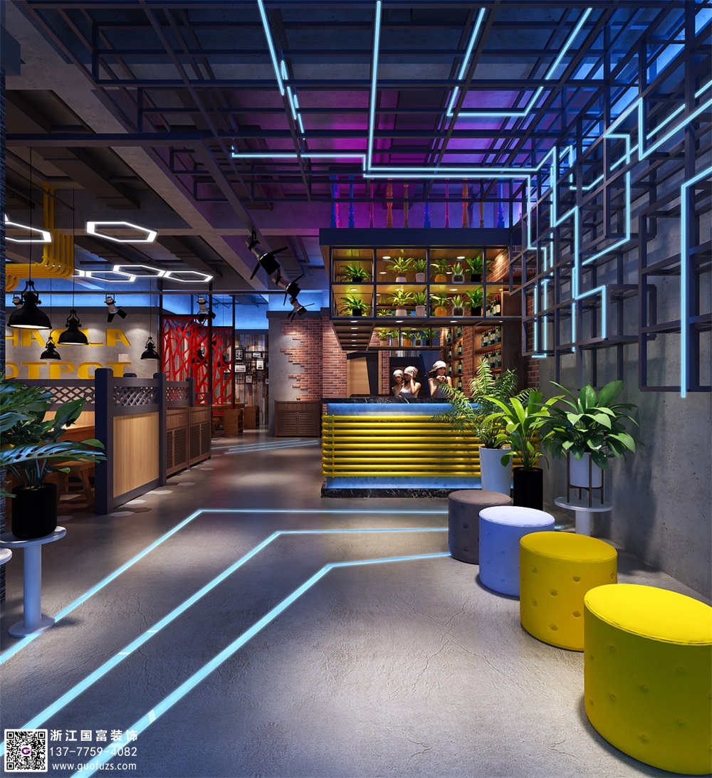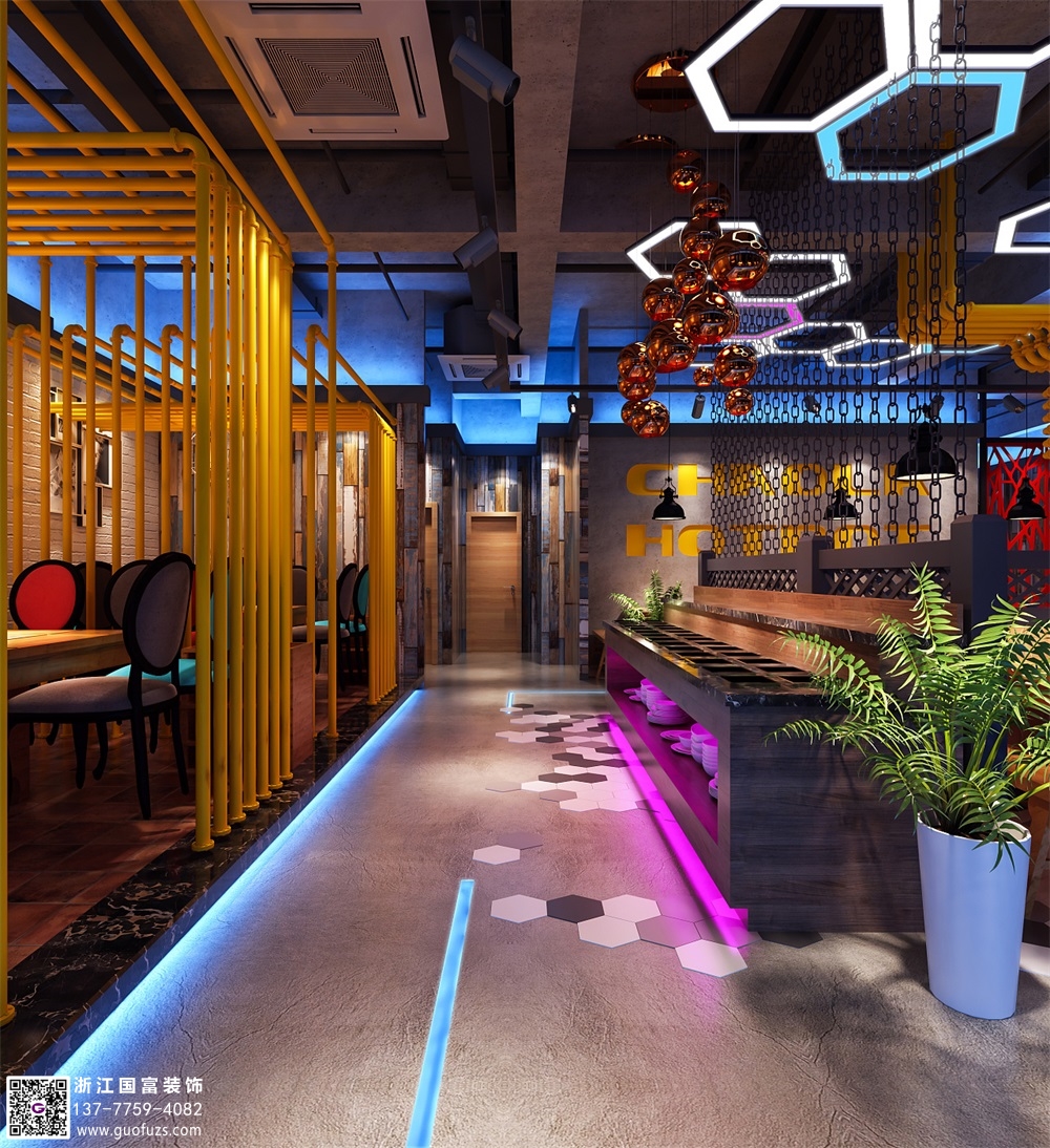 潮辣火鍋店裝修設計案例效果圖