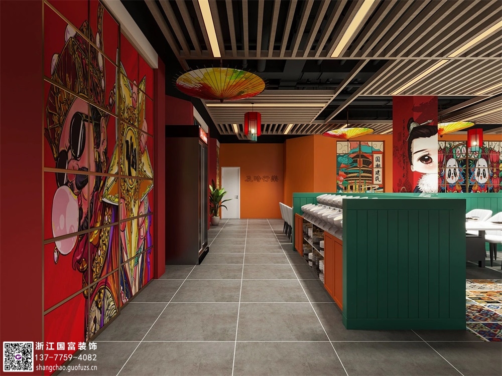 金華國潮風格火鍋店裝修設計案例效果圖
