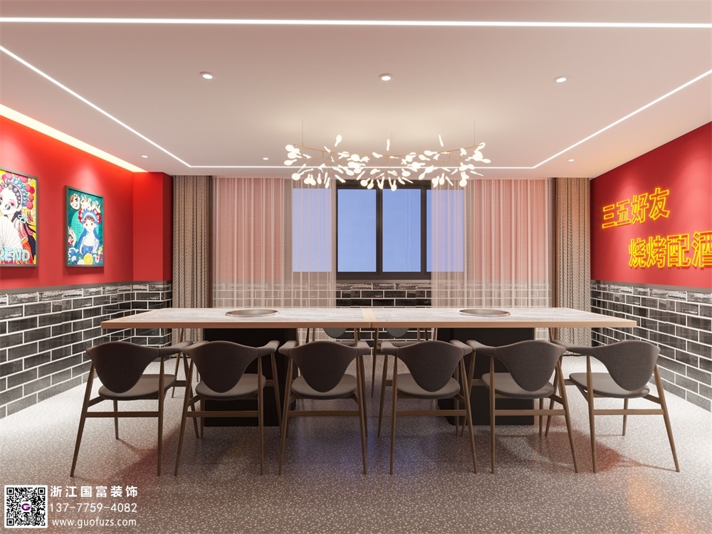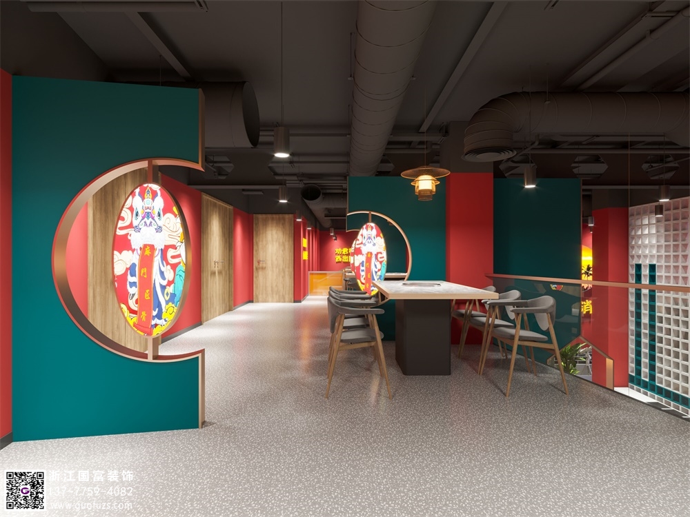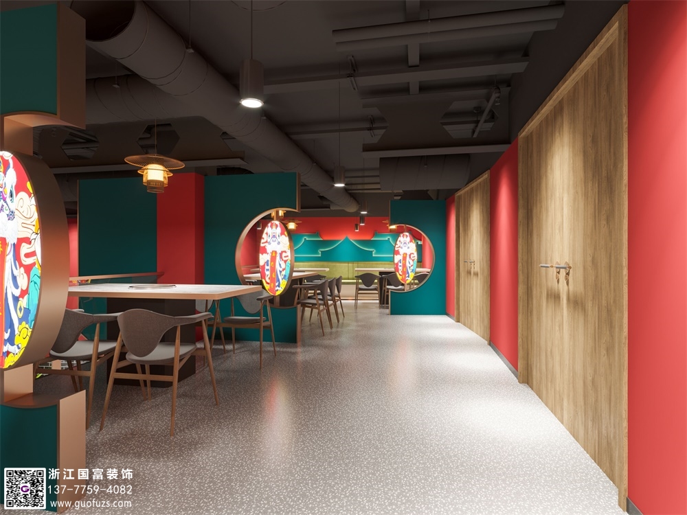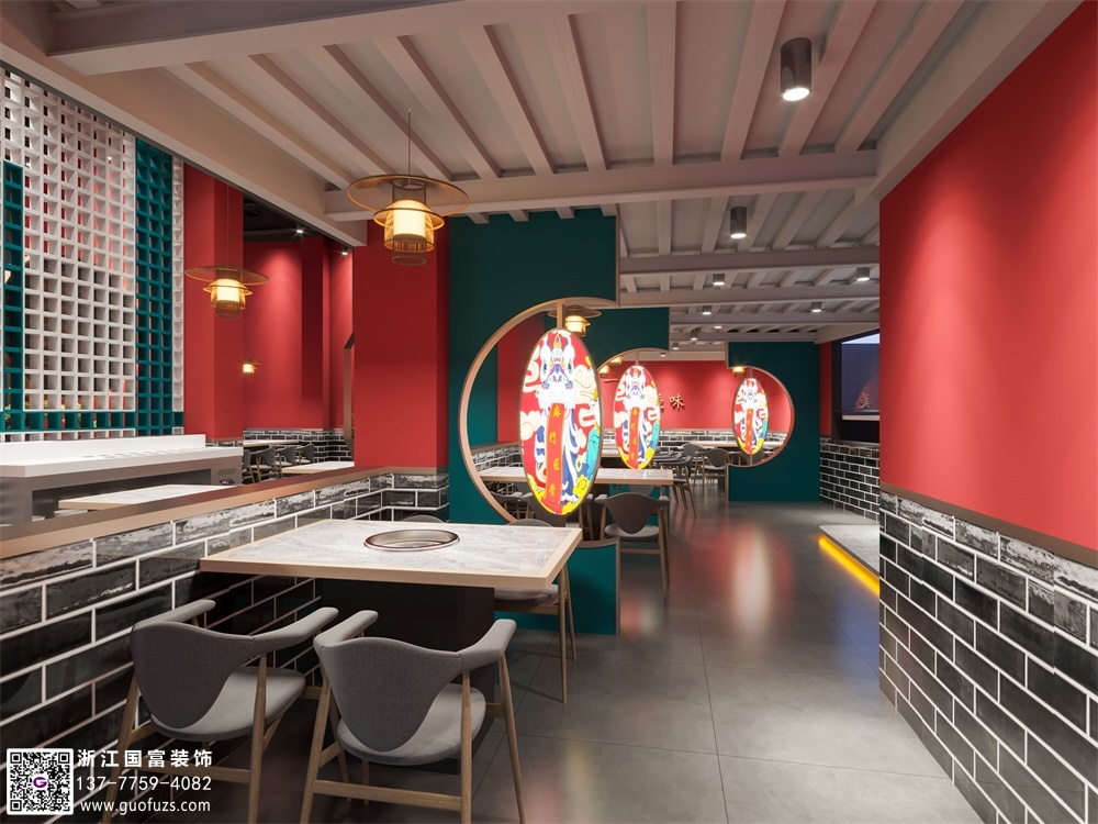 潮辣火鍋店裝修設計案例效果圖