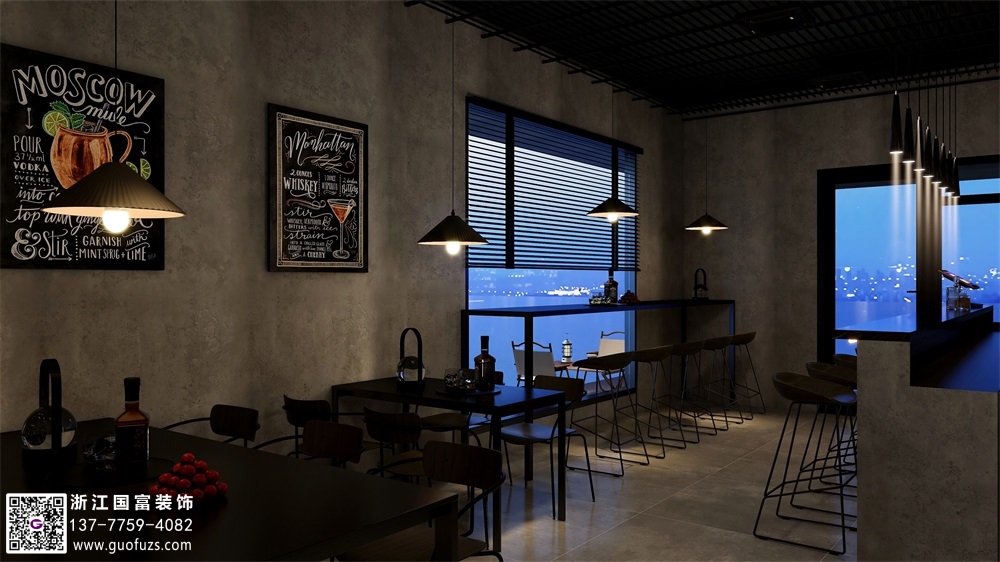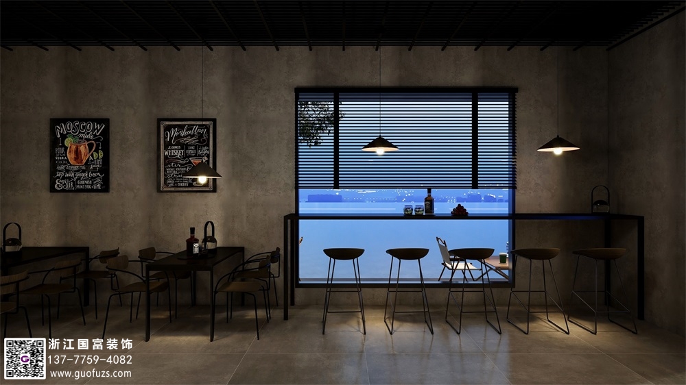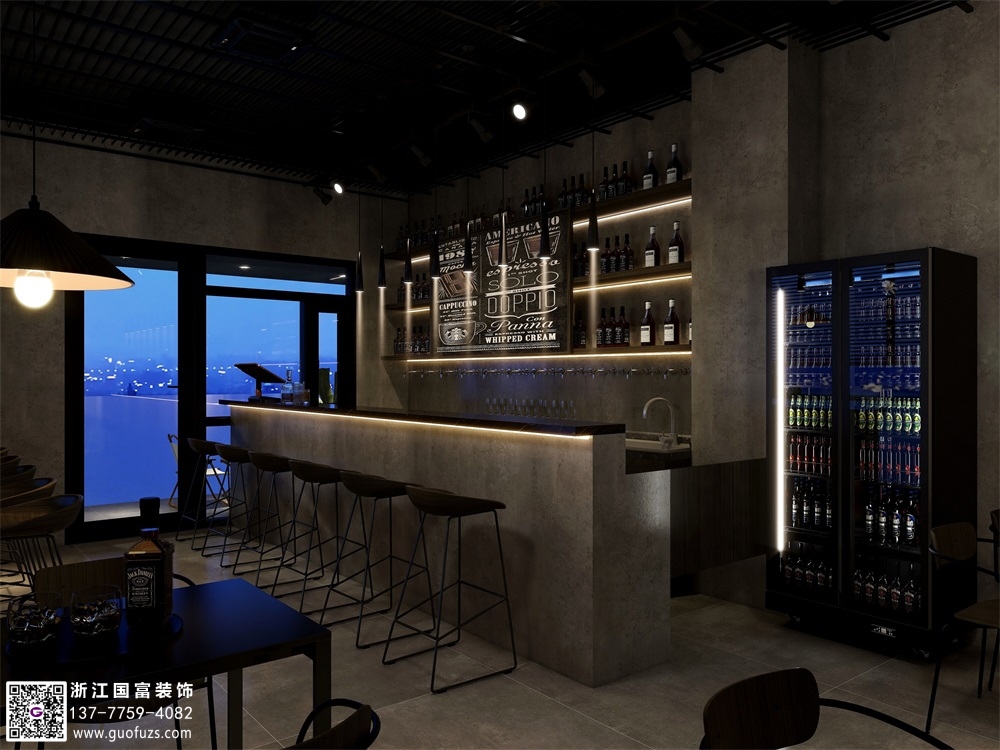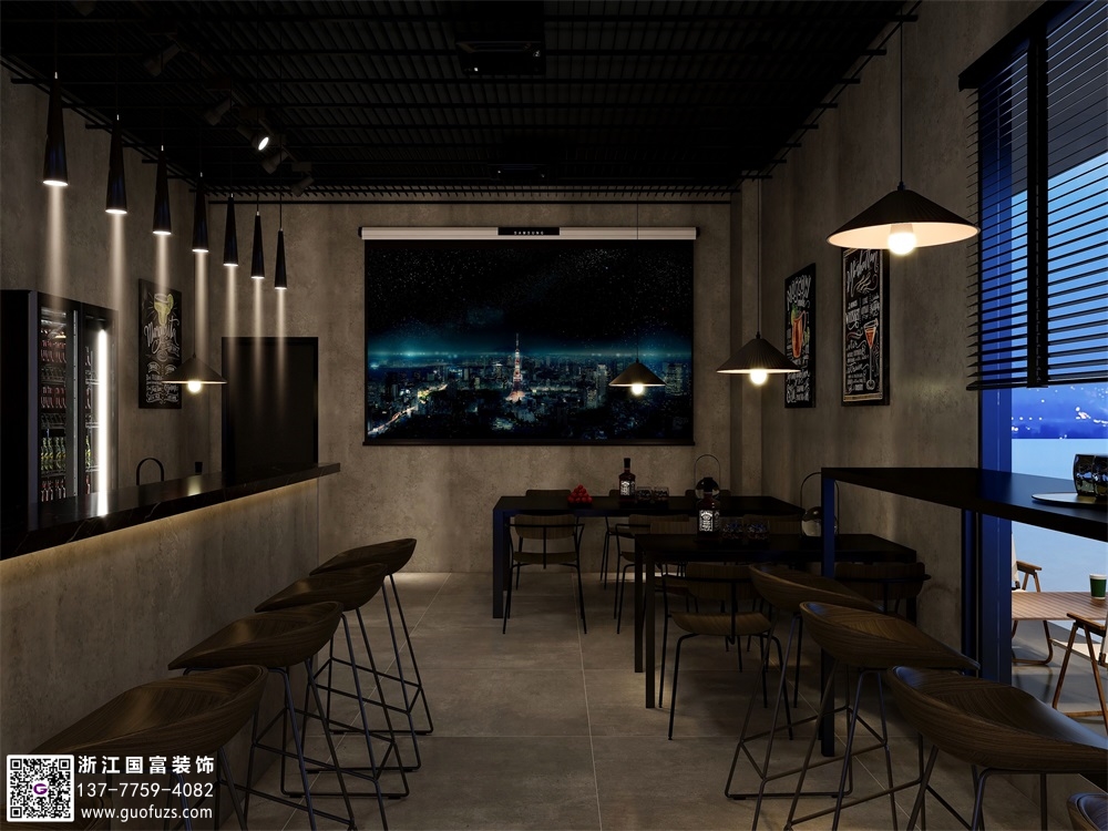 富陽水泥工業風清吧設計裝修案例效果圖
