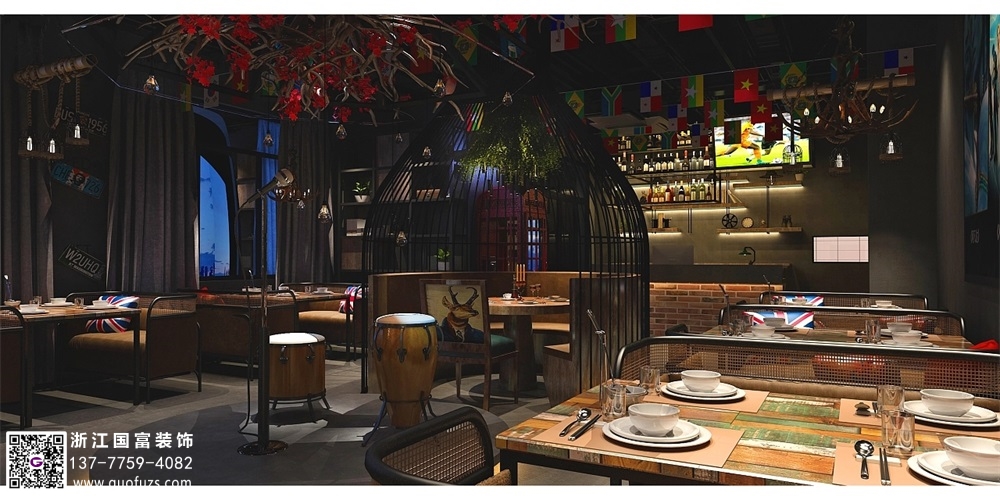 民國風(fēng)格燒烤餐廳裝修設(shè)計案例效果圖
