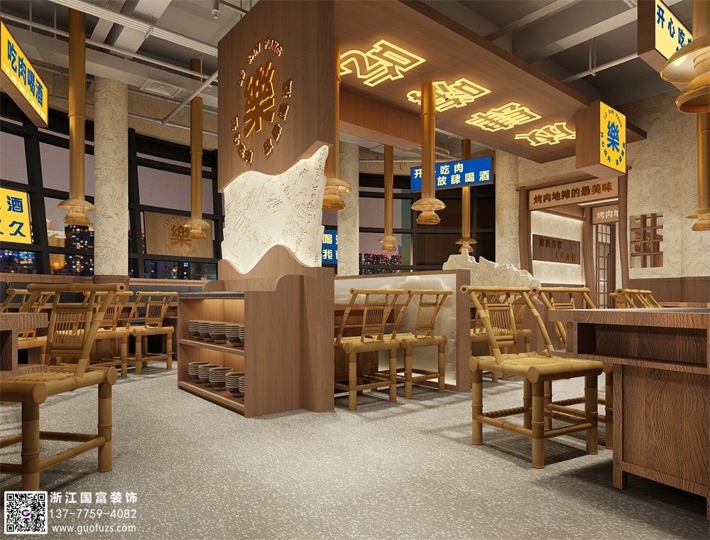 國潮風燒烤店裝修設計案例效果圖